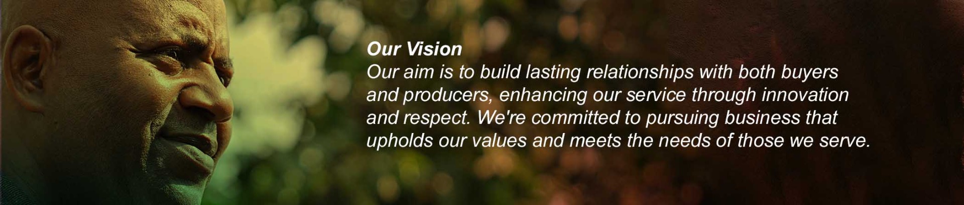 Our aim is to build lasting relationships with both buyers and producers, enhancing our service through innovation and respect. We're committed to pursuing business that upholds our values and meets the needs of those we serve.